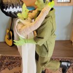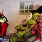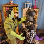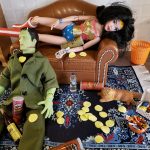Jeannie invites Frankenstein's Monster and his bride over for a sushi dinner, while Elvis takes Ralphie Christmas shopping and to see a movie.