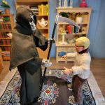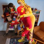 After Jeannie wakes Elvis, the two explain to Catwoman over coffee and orange juice while stealing is wrong. Catwoman apologizes, and the three become friends.